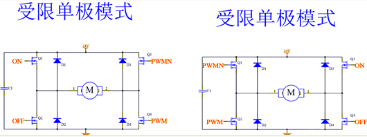 即H橋的上半橋臂用PWM控制,而下半橋臂常開。